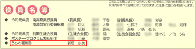 しかし、ある高校の2019年の文化祭(南高祭)の役員名簿に新居歩美さんの名前を確認することができました。